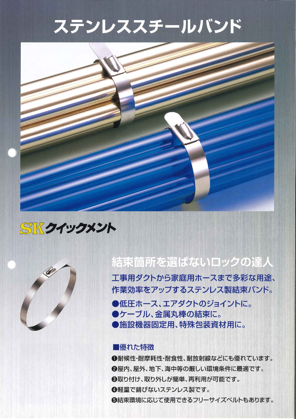 【特徴】 ○工事用ダクトから家庭用ホースまで多彩な用途 ○作業効率をアップするステンレス製結束バンド ○高温環境に耐える高機能結束バンド