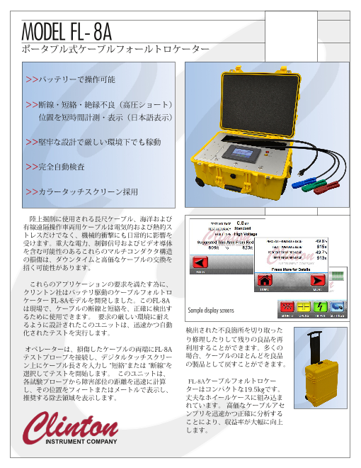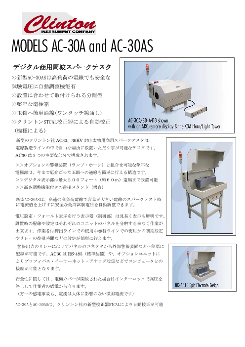 >> 新型AC-30ASは高負荷の電線でも安全な試験電圧に自動調整機能有 >> 設置に合わせて取付けられる分離型 >> 堅牢な電極箱 >> 玉鎖へ簡単通線(ワンタッチ線通し) >> クリントンSTCAL校正器による自動校正(機種による)
