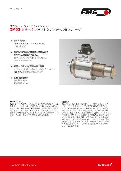 FMS社では紙・フィルム・シート等コンバージョン産業用として ベアリング付ロードセルを始め、種々の張力計測器、アンプリファと 正確な位置決めを行えるウェブガイドを製造しています。 このカタログで製紙・紙加工用の概要が御覧頂けます。