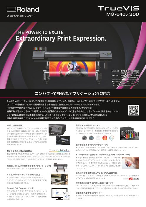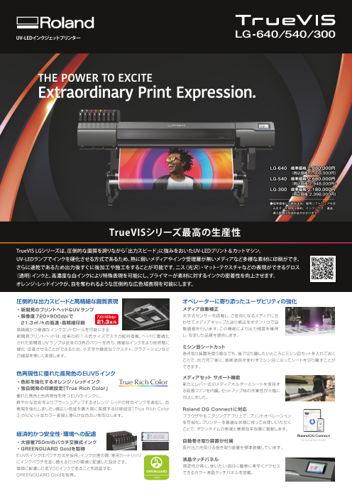 高発色な色表現と繊細な画像表現において「圧倒的な表現力」を誇るTrueVISシリーズに、速乾性や幅広いメディア対応力を備えたUV-LEDプリンター、「LGシリーズ」と「MGシリーズ」が登場。グラフィックプリントに新たな次元をもたらします。両機種ともプリン...