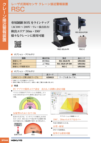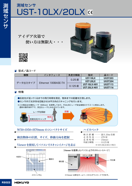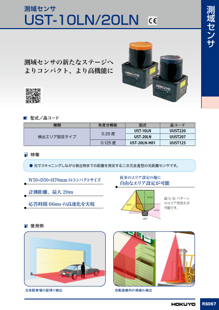 ●PCによる簡単なエリア設定が可能、 ●業界初のSDカードへの設定保存機能をはじめとする多数の新機能により使いやすさが充実。 ●広範囲な防護エリアで安全性を実現 ●マスタ/スレーブで4台を1台で制御 ●周囲の環境データを出力、AGVの自動運転に応...