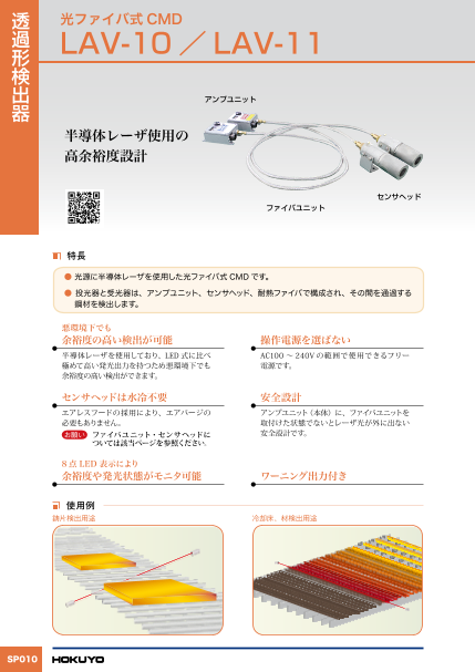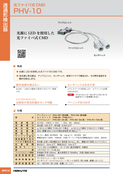 ●光源にLEDを使用した光ファイバ式CMDです。 ●投光器・受光器は、アンプユニット、センサヘッド、耐熱ファイバで構成され、その間を通過する鋼材を検出します。 ●操作電源を選ばない ●センサヘッドは水冷不要 ●ワーニング出力付き ●8点LED表...