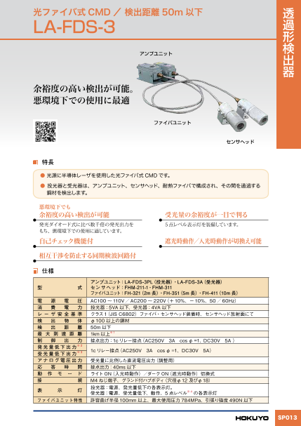 ●投光器と受光器はアンプユニット、センサヘッド、耐熱ファイバで構成され過酷な環境の製鉄所、重工業での鋼材検出に最適 ●悪環境下でも余裕度の高い検出が可能 ●センサヘッドは水冷不要 ●操作電源を選ばない ●安全設計 ●8点LED表示により余裕度や...