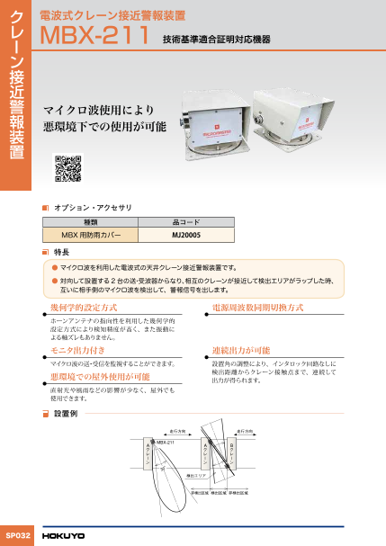 ●相互のクレーンが接近して検出エリアに入った時、互いに相手側のマイクロ波を検出して警報信号を出力 ●幾何学的設定方式 ●モニタ出力付き ●悪環境下での屋外使用が可能 ●連続出力が可能 ●電源周波数同期切換方式
