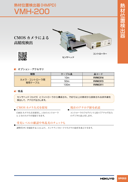 ●センサヘッド(カメラ)とコントローラから構成され、750℃以上の熱材から放射される赤外線を検出して、アナログ出力します。 ●CMOSカメラ方式を採用 ●現在のアナログ値を直読 ●受光レベルの確認や外乱光のチェックも