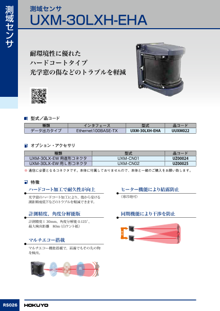 ●耐環境性に優れたマルチエコー対応の2D LiDAR ●ハードコート加工により光学窓の傷もつきにくくなりました ●最大検出距離80mの長距離タイプ ●ヒータ機能により結露防止 ●同期機能により干渉を防止