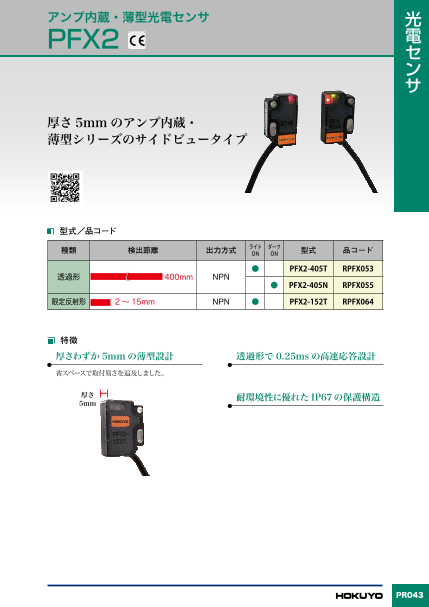 ●厚さわずか5mmの薄型設計 ●透過形で0.25msの高速応答設計 ●耐環境性に優れたIP67の保護構造
