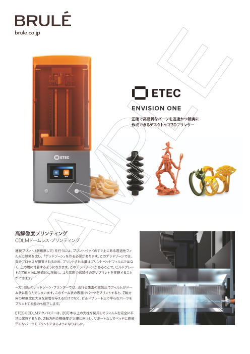 【掲載内容】 ◆BRULE Inc 会社概要 ◆BRULE Inc 製品ラインナップ ◆Nexa3D社について ◆大幅にアップグレードした3つのポイント 1.材料ラインナップ 2.操作性 3.パーツのクオリティ ◆詳細はカタログ...