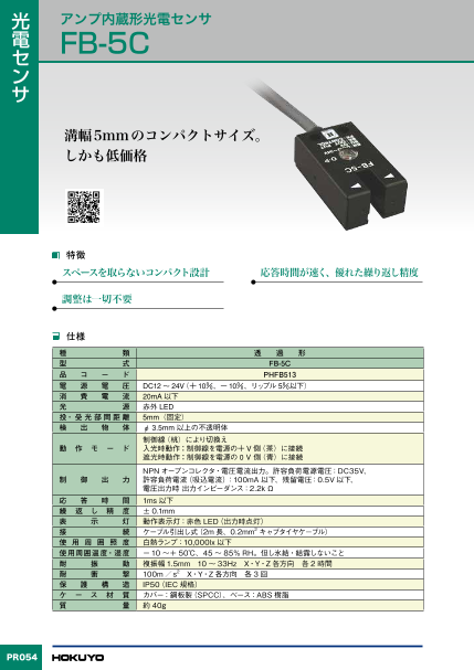 ●煩わしい調整は一切不要です。 ●溝幅50mm、検出体の通過位置が多少バラついても問題なく検出できます。 ●プラスチックケース採用の軽量タイプです。 ●応答時間が早く、繰返し精度も優れています。