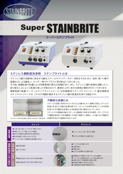 ステンレス溶接焼け取り電解装置スーパーステンブライトTK-230の刷毛型モップ専用ステッシャーで細部の焼けも簡単に処理さらに上位機種スーパーステンブライトTK-330なら大型ワークの焼け取りを簡単処理
