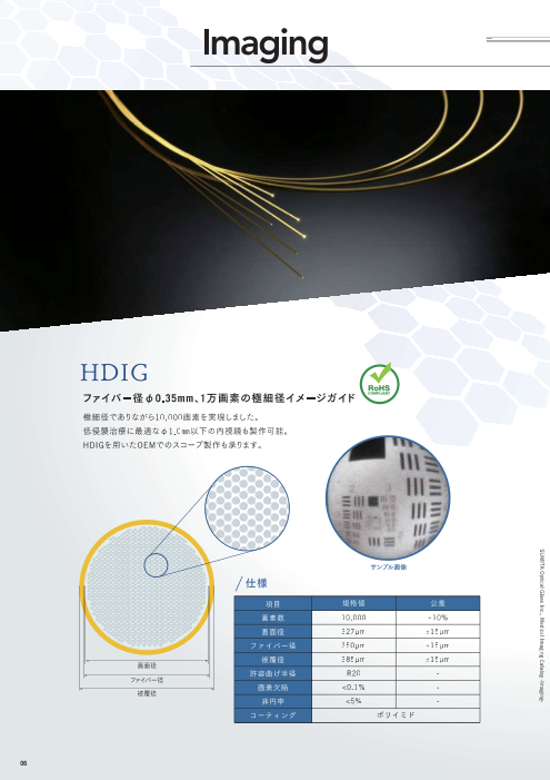 ファイバー径Φ0.35mm、1万画素の極細径イメージガイド