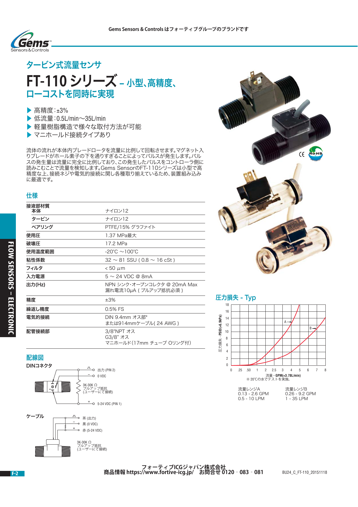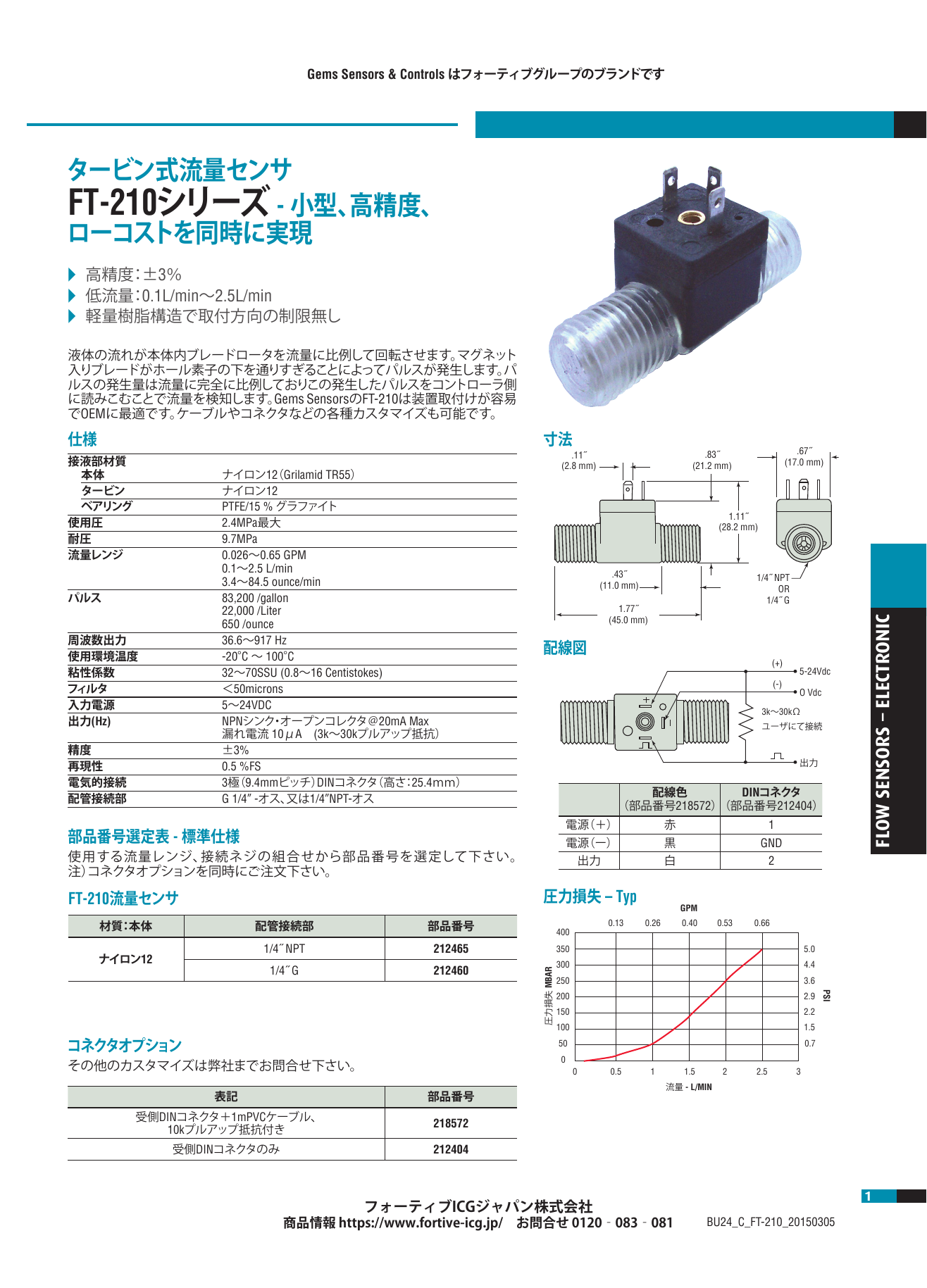 • 高精度:±2% • 優れた再現性:±0.5%FS • 電子部品とケーブル接続部の成型密閉保護 • 低流量: 0.76 L/min~15.14 L/min • 軽量樹脂構造で様々な取付方法が可能