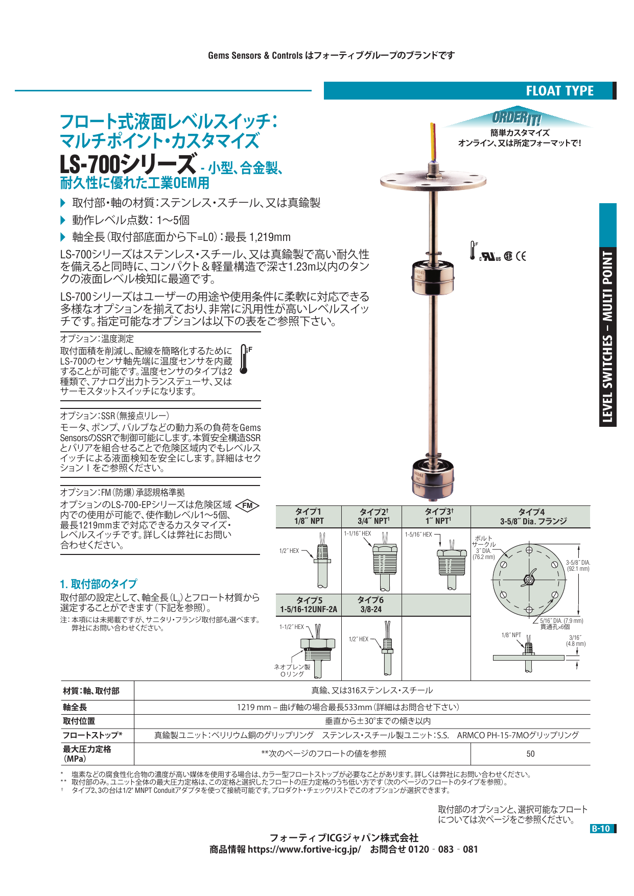 • 取付部・軸の材質:ステンレス・スチール、又は真鍮製 • 動作レベル点数:1~5個 • 軸全長(取付部底面から下=L0):最長1,219mm