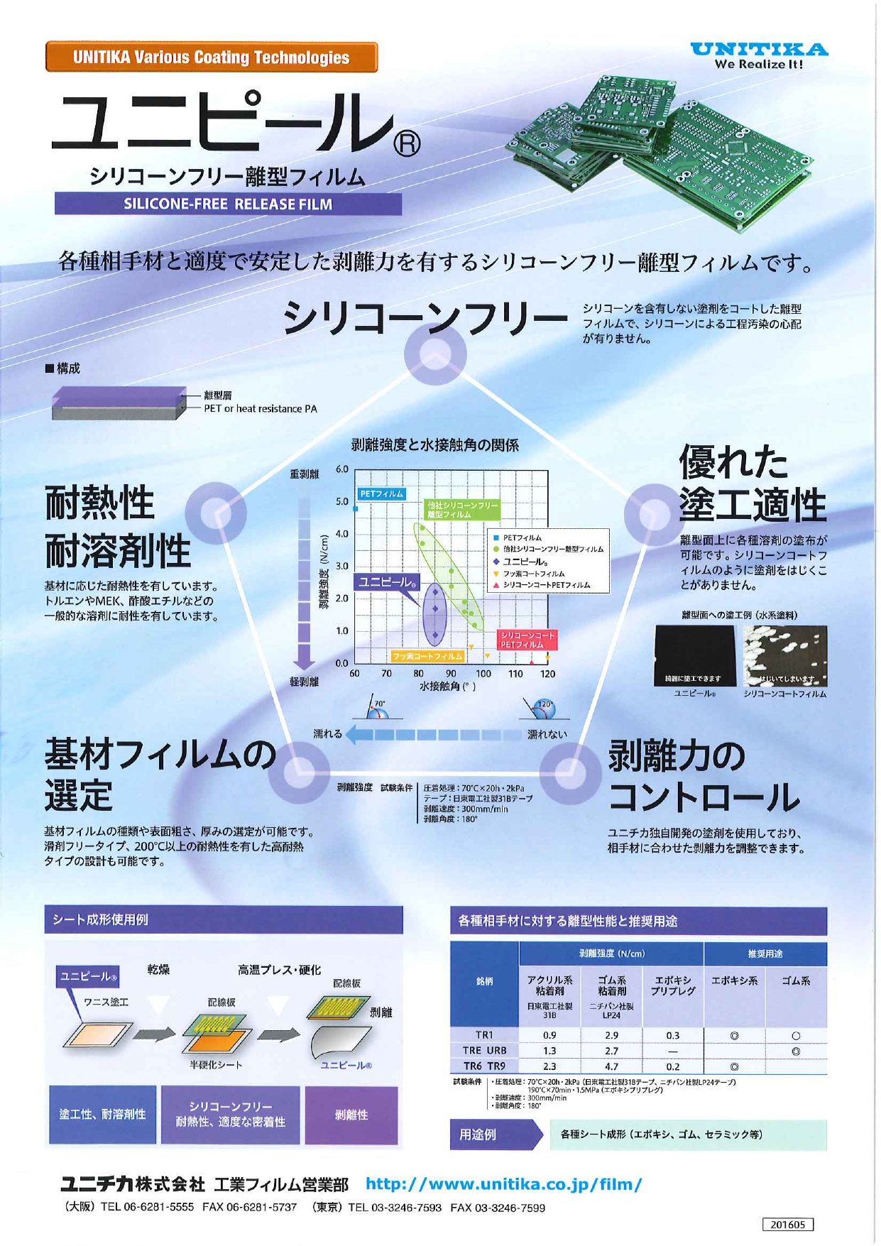 ユニチカが独自に開発した、シリコーンを含有しない塗剤をコートしたPETフィルム。 シリコーンによる工程汚染の心配がありません。