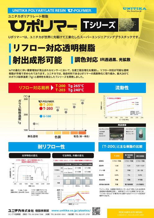ユニチカポリアリレート樹脂 Uポリマー Tシリーズ
