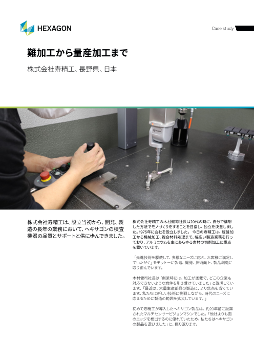 株式会社寿精工様は、設立当初から、開発、製造の長年の業務において、Hexagonの検査機器の品質とサポートと共に歩んできました。 導入製品「GLOBAL S」のカタログはこちら▼ https://www.aperza.com/catalog/pa...