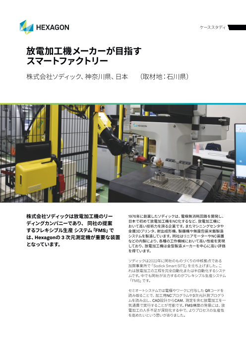 株式会社ソディック様は放電加工機のリーディングカンパニーであり、 同社の提案するフレキシブル生産 システム「FMS」では、Hexagonの 3 次元測定機が重要な装置となっています。 導入製品「TIGO SF」のカタログはこちら▼ https:/...