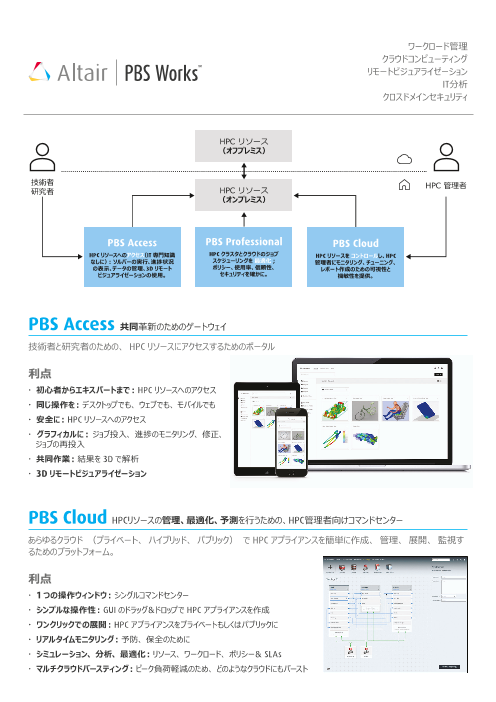 HPCwire 誌の読者にNo.1 ソリューションとして選出されたPBS Works は、ハイパフォーマンスコンピューティング(HPC)環境向けにAltairが提供している包括的で安全なワークロード管理スイートです。PBS Works の導入により、HP...