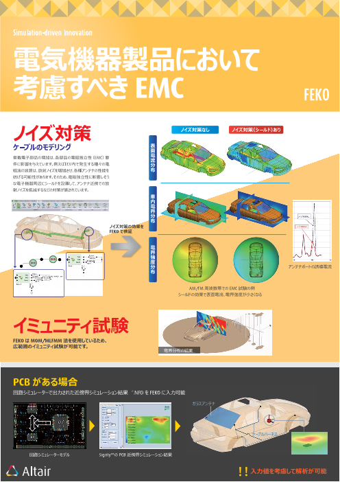 【掲載内容】 電気機器製品において考慮すべきEMC ◆ノイズ対策 ◆イミュニティ試験 ◆FEKOを用いたEMCの解析 ◆FEKOについて ◆EMC解析の特徴 など ◆詳細は、カタログをダウンロードしてご覧ください。