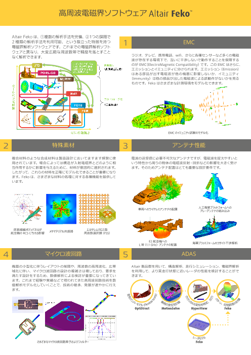 Altair Fekoは、包括的な高周波向け計算電磁気学(CEM)ソフトウェアです。電気通信、自動車、航空宇宙、防衛の各産業で広く活用されています。Fekoでは、1つのライセンスで複数の周波数領域 / 時間領域EMソルバーを使用できます。これらの解析手法...