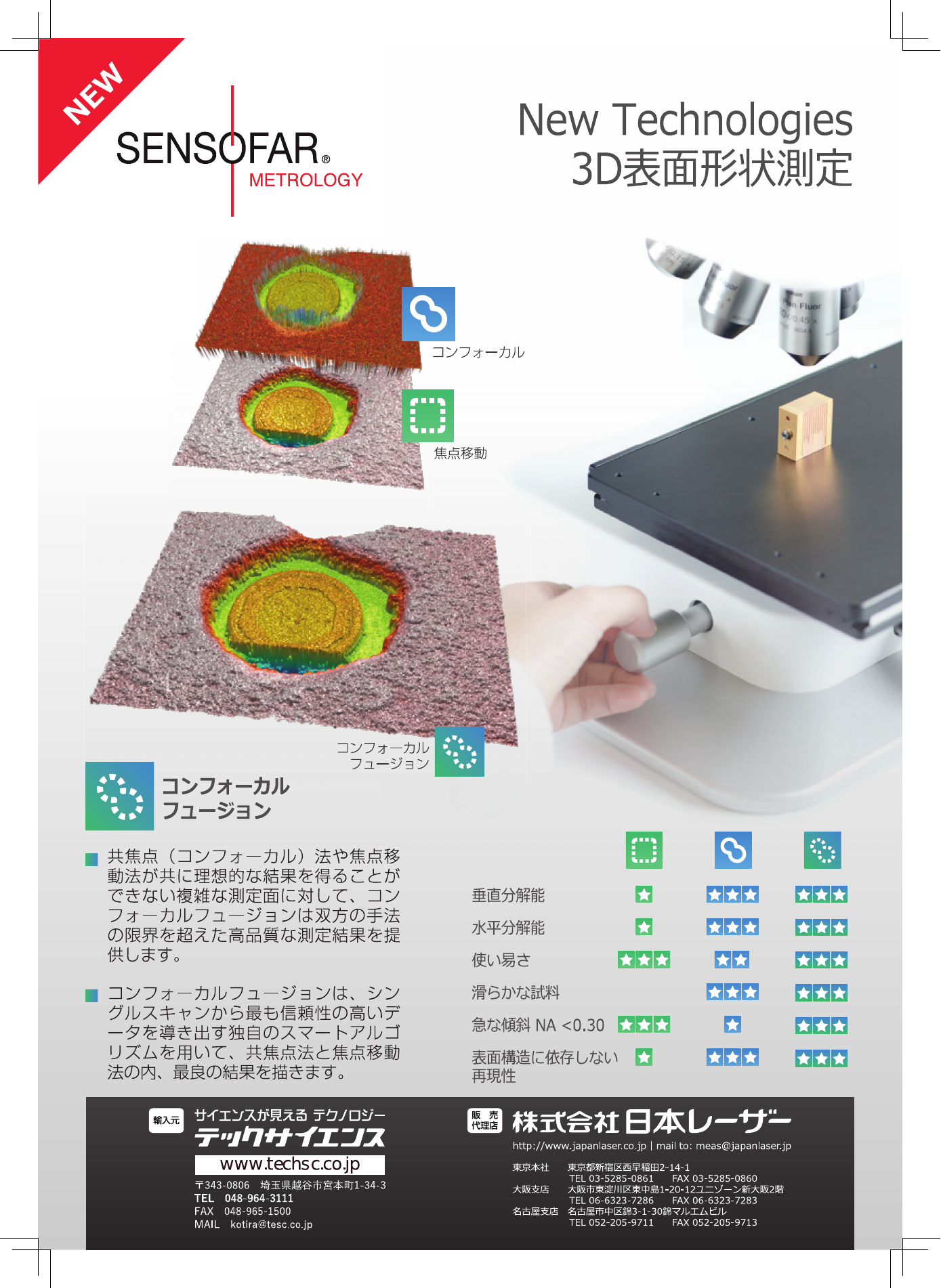 共焦点(コンフォーカル)法や焦点移動法が共に理想的な結果を得ることができない複雑な測定面に対して、コンフォーカルフュージョンは双方の手法の限界を超えた高品質な測定結果を提供します。