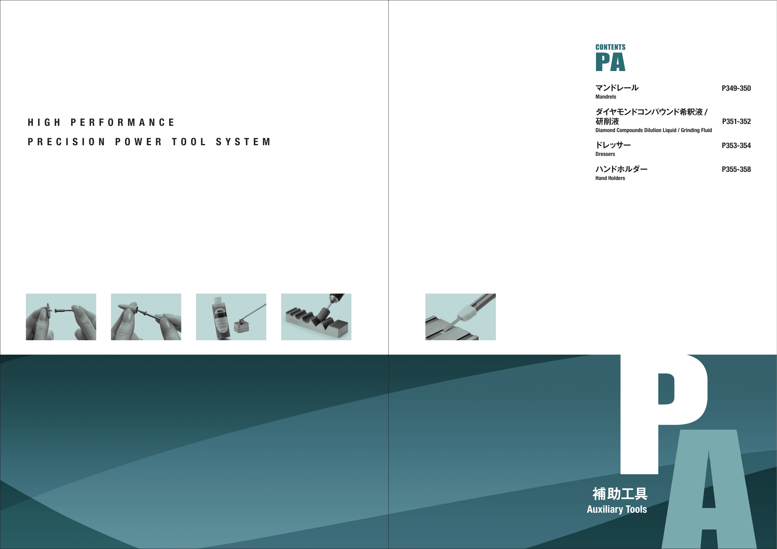 【掲載製品一覧】 ■マンドレール Mandrels ■ダイヤモンドコンパウンド希釈液 /研削液 Diamond Compounds Dilution Liquid / Grinding Fluid ■ドレッサー Dressers ■ハンドホルダー Han...