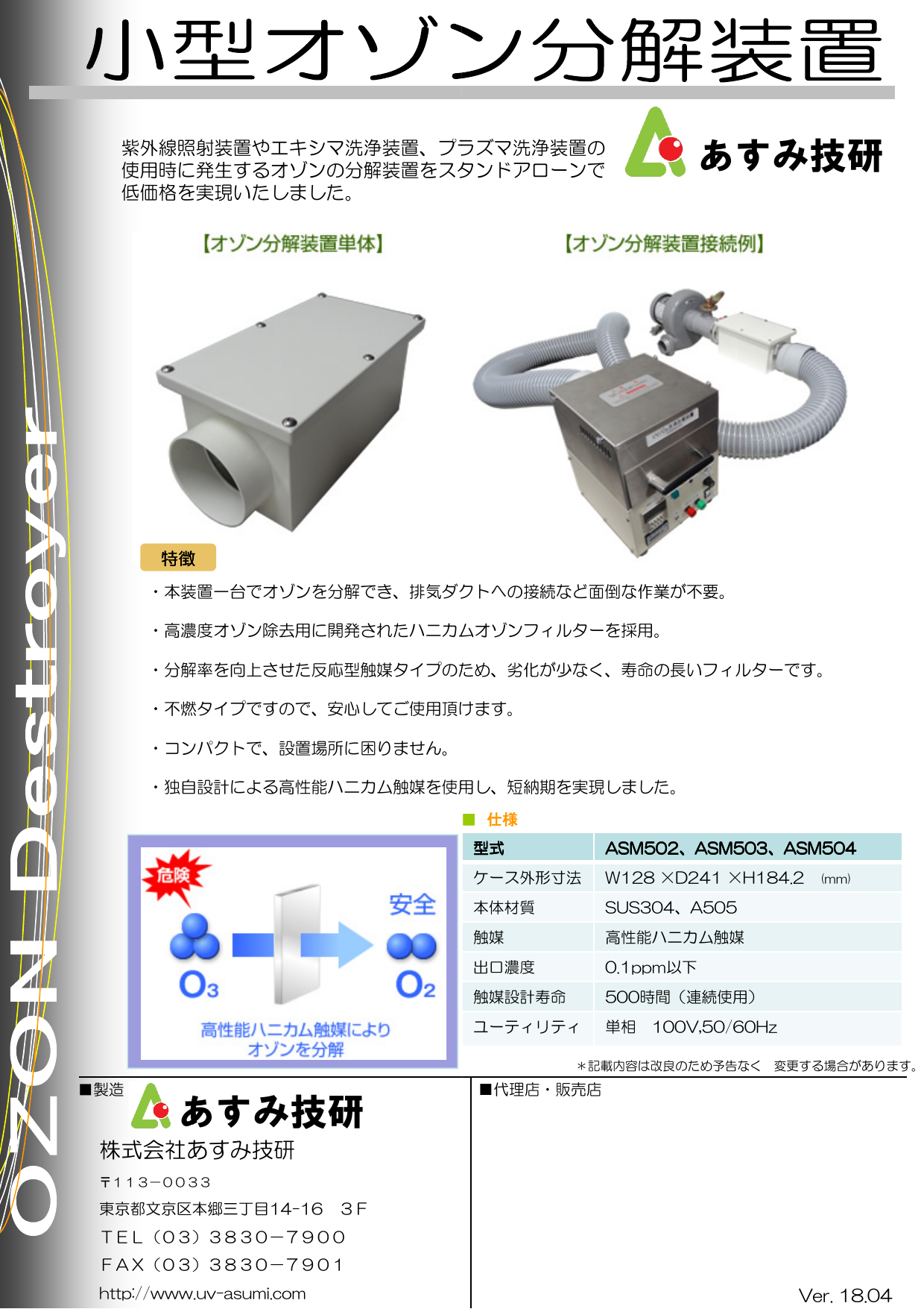 エキシマ装置、コロナ装置、プラズマ装置等で発生する有害なオゾンを除去分解します。 デモ装置もご用意しておりますので、効果を事前にご確認していただけます。