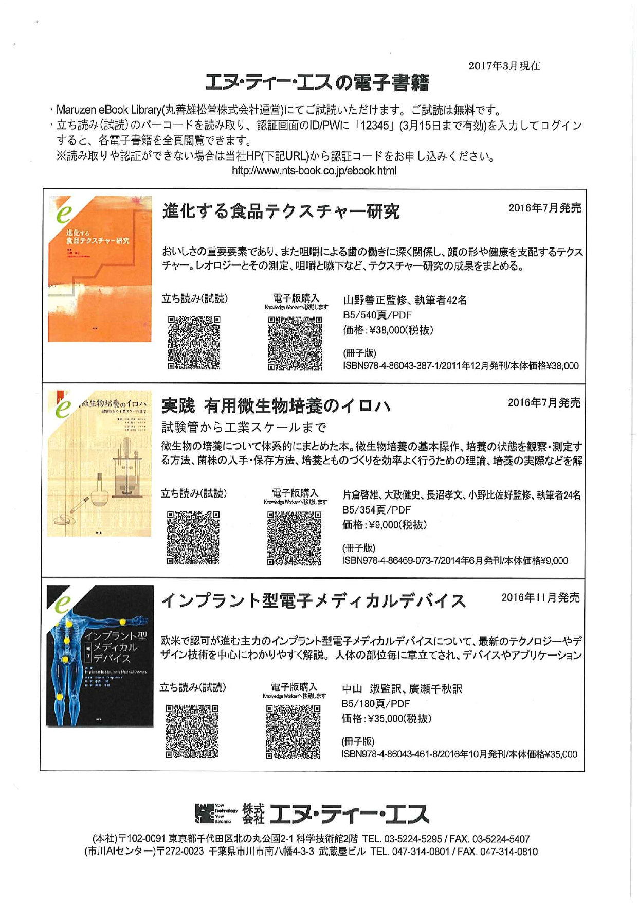 電子書籍タイトル紹介 ・進化する食品テクスチャー研究 ・実践 有用微生物培養のイロハ ・インンプラント型電子メディカルデバイス ・バイオマス由来の高機能材料 ・デジタル薬用植物辞典 ・科学技術計算のためのPython