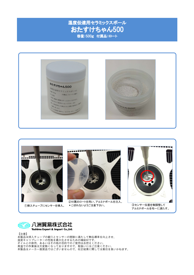 本製品は挿入チューブの縦穴とセンサーの間隙に満たして熱伝導率を向上させ、温度キャリブレーターの性能を最大化させるための補助材です。 ◆詳細はカタログをダウンロードしご覧いただくか、お気軽にお問い合わせ下さい。