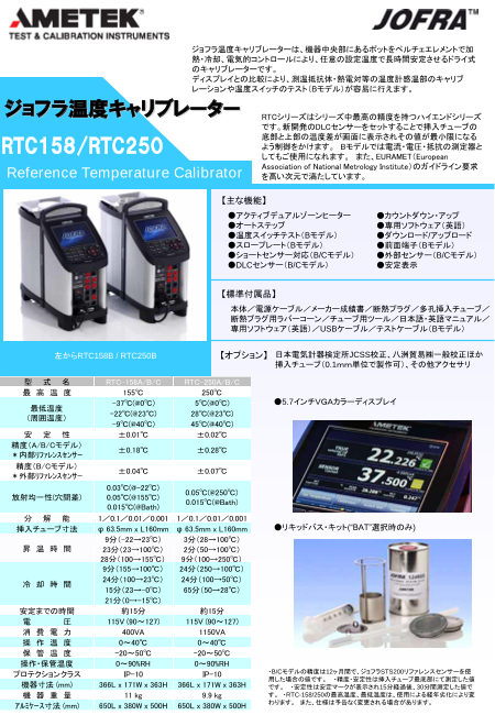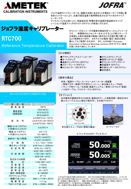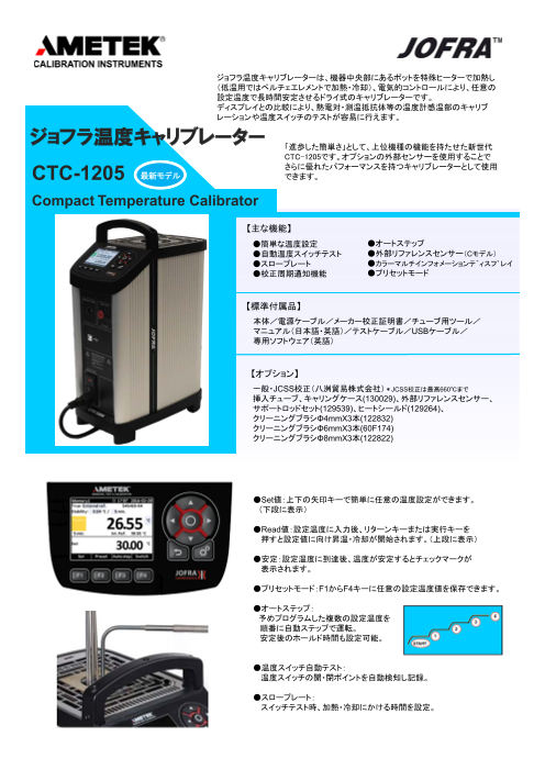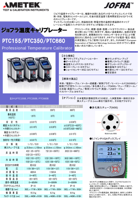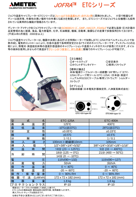 小型で軽量なボ ディーは高所等、作業性の悪い場所での作業にも威力を発揮します。 また、ETCシリーズではジョフラ上位機種にも採用 されている実用的な機能が搭載されています。 デンマーク・アメテック社ジョフラキャリブレーターはISO9000シリーズ、...