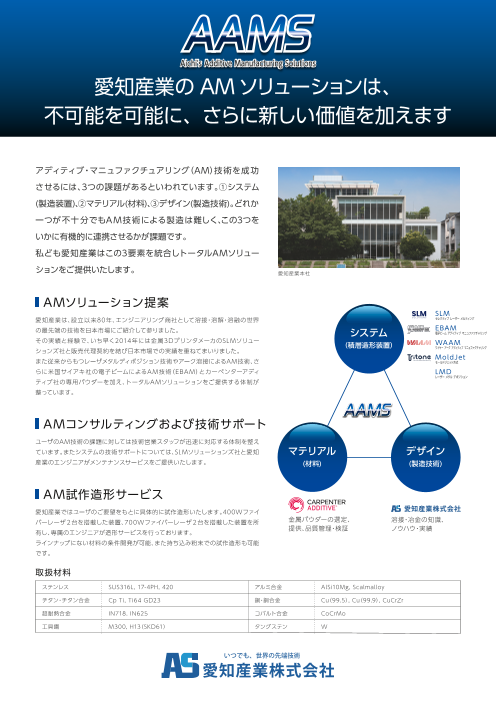 愛知産業AMソリューションは、不可能を可能に、さらに新しい価値を加えます