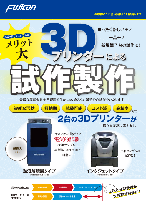 3Dプリンタを活用した端子台の試作制作サービスのご紹介です。 フジコンならではの強み ①端子台メーカーとしてのきめ細やかな対応力 フジコンの3Dプリンター請負はただ作るだけではありません。端子台メーカーとして培っていた精緻な技術力で、カタチにし...
