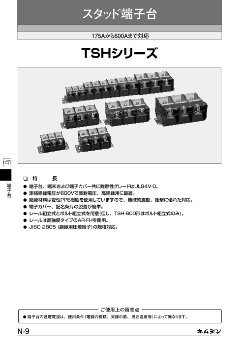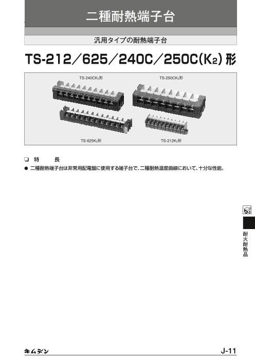 二種耐熱端子台は非常用配電盤に使用する端子台で、二種耐熱温度曲線において、十分な性能 ◆詳細はカタログをダウンロードしご覧いただくか、お気軽にお問い合わせ下さい。
