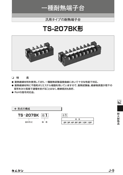 ◆耐熱絶縁材料を使用しており、一種耐熱試験温度曲線において十分な性能で対応。 ◆耐熱絶縁材料に不飽和ポリエステル樹脂を用いていますので、耐熱試験後、絶縁物表面が若干の変形をみた程度で通電を妨げることはなく、絶縁抵抗も良好。 ◆RoHS指令対応品。 ...