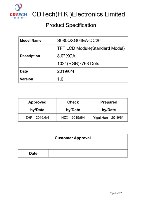 型番:S080QXG04EA-DC26 インターフェース:LVDS バックライト:27 LEDs 光度:800nits 視角:Full view 解像度:1024(horizontal)*768(Vertical) ODサイズ:183.2*1...