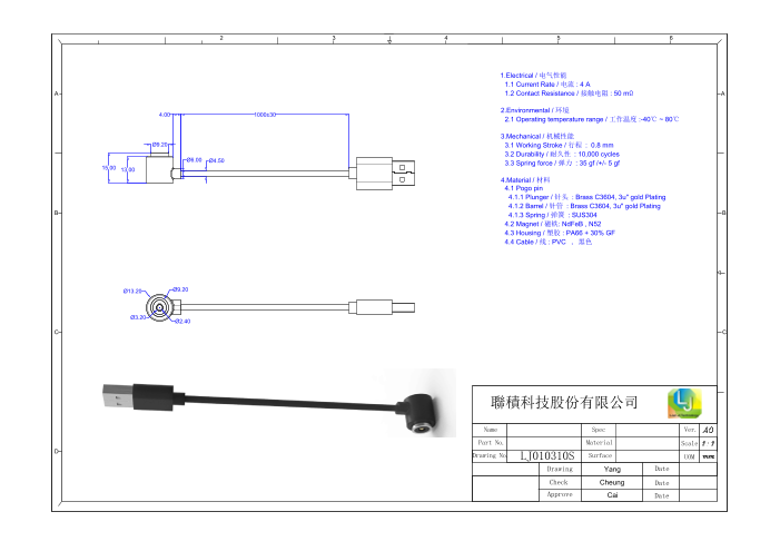 台湾 Lian Ji Technology 聯積科技 台湾 ポゴピン磁気コネクタ+U...