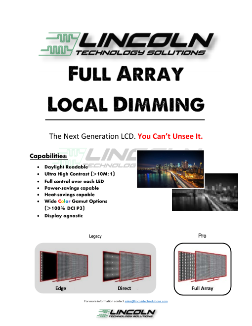 Lincoln Technology Solutions(LTS リンカーン テクノロジー ソリューション)は、米国ノースカロライナ州にあるディスプレイソリューションメーカーです。 LTSは、カスタム高/超高輝度ディスプレイ、カスタム高ダイナミックレンジ...