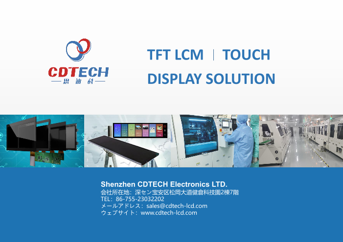 CDTechは、2011年に設立された中国 深センのTFT液晶ディスプレイ(LCD)、TFT液晶ディスプレイモジュール(LCM)、静電容量式タッチスクリーン、産業用HMIハードウェアのメーカーです。標準品、及びカスタマイズディスプレイ製品とソリューション...