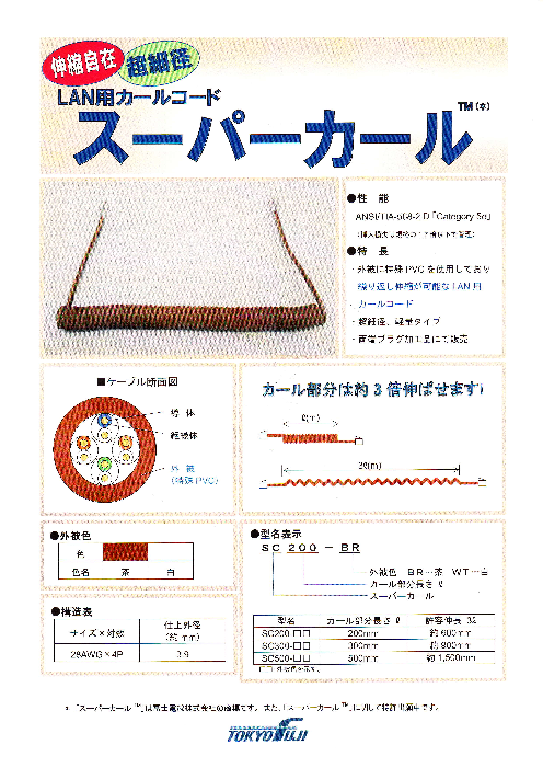富士電線「スーパーカール」カテゴリ5 細径LAN 両端プラグ付 カールコードです。カールコードを伸縮する事により、配線接続時の長さが自在に調整できます。カール部分は約3倍に伸ばすことが可能です。通常のパッチコードと比較して約28%細径、約45%軽量を実現...