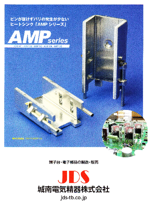 城南電気精器㈱ ピンが抜けず、バリの発生が少ない基板取付用ヒートシンク(放熱板) AMPシリーズ のご紹介です。一箇所にネジ穴が開いており、TO-220パッケージ 三端子レギュレーターやトランジスタを固定できます。基板取付用のピンが付いており、基板に固定...