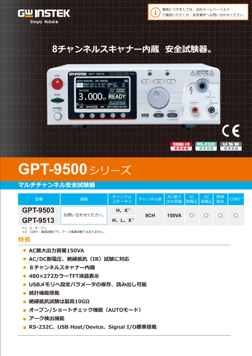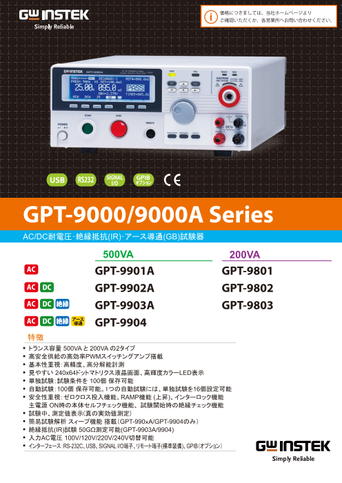 500VA/200VA ACW/DCW/IR/GB対応 安全規格試験器