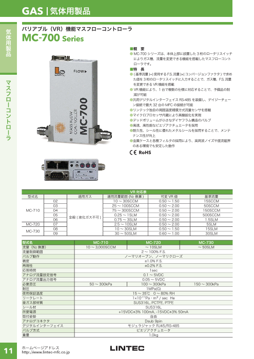 MM-3000L シリーズは、MC-3000Lシリーズをベースにした高性能のデジタルマスフローメータです。 ◆デジタルインターフェイスは、RS-485を標準装備。 ◆リンテック独自の周囲温度補償方式流量センサを搭載。 ◆マイクロプロセッサ内蔵に...
