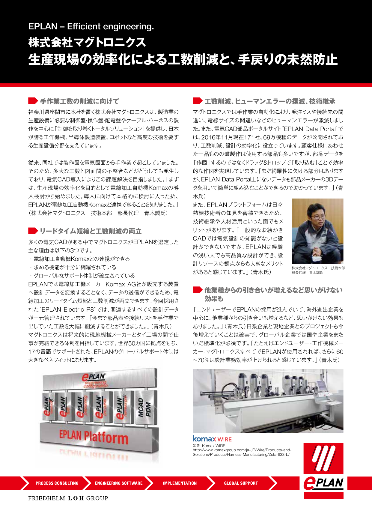 ■制御盤メーカーxEPLAN サクセスストーリー 制御盤メーカーの株式会社マグトロニクス様が EPLANをどのように活用し、電気設計の効率化を叶えたのか。 サクセスストーリーをご紹介します。 カタログの内容 EPLANサクセスストーリーのご...