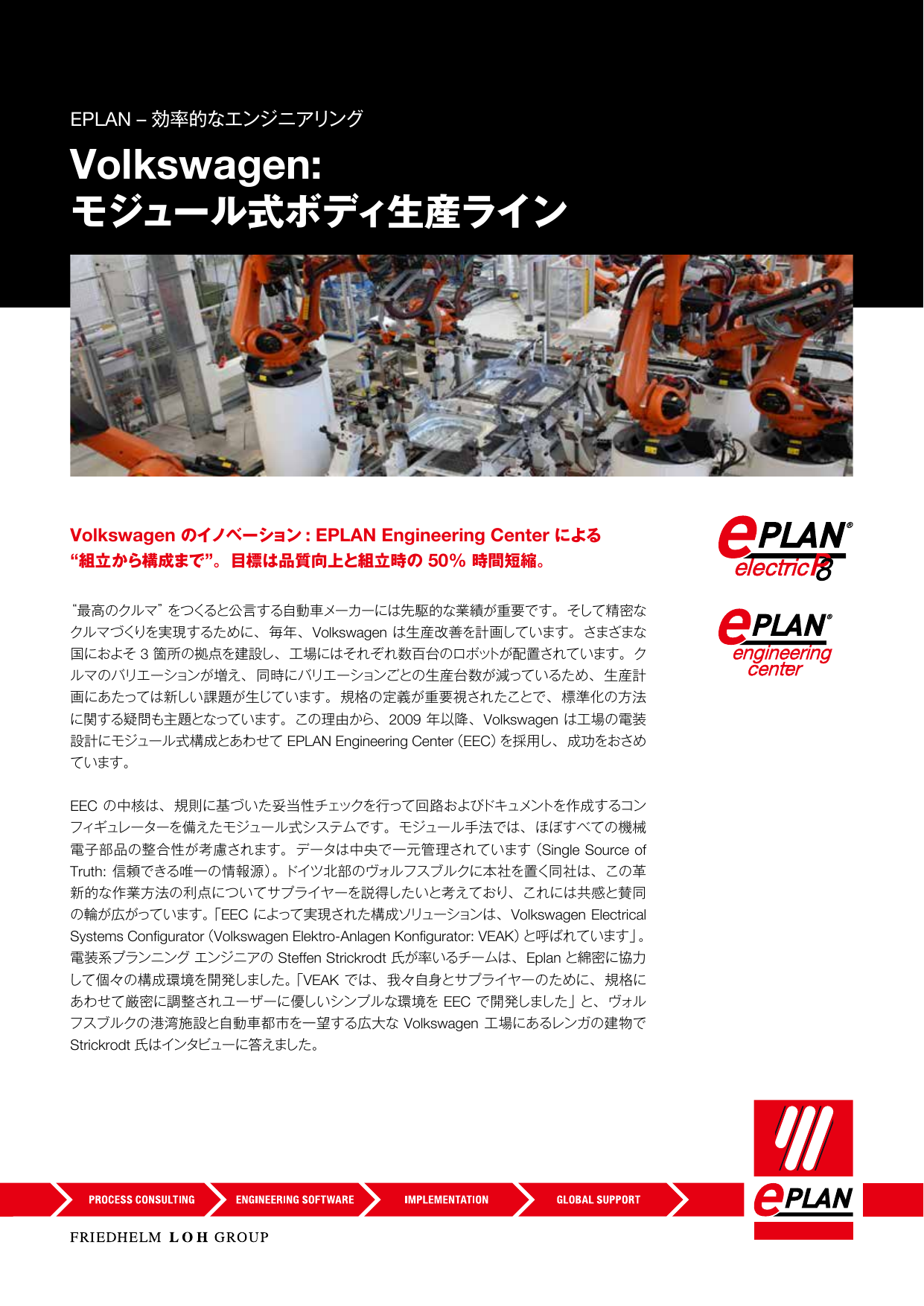Volkswagenのイノベーション:EPLAN Engineering Centerによる〝組立から構成まで”。 目標は品質向上と組立時の50%時間短縮。 ■約300ページの回路図が必要な場合、基本構造を「2時間以内で7,8割構成できま...