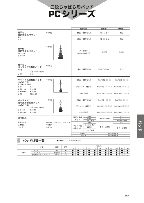 ・継手付固定式金具付パッド/PCTK・PCYK ・継手なしバッファ式金具付パッド/PSS ・バッファ式金具付パッド/NAPCTS・YS ・バッファ式回り止め金具付パッド/NAPCTH・YH ・三段じゃばら形パッド/PCG ◆詳細はカタログを...