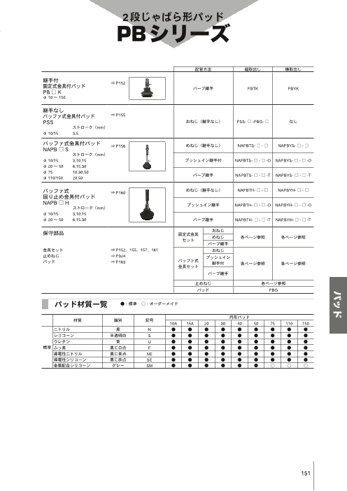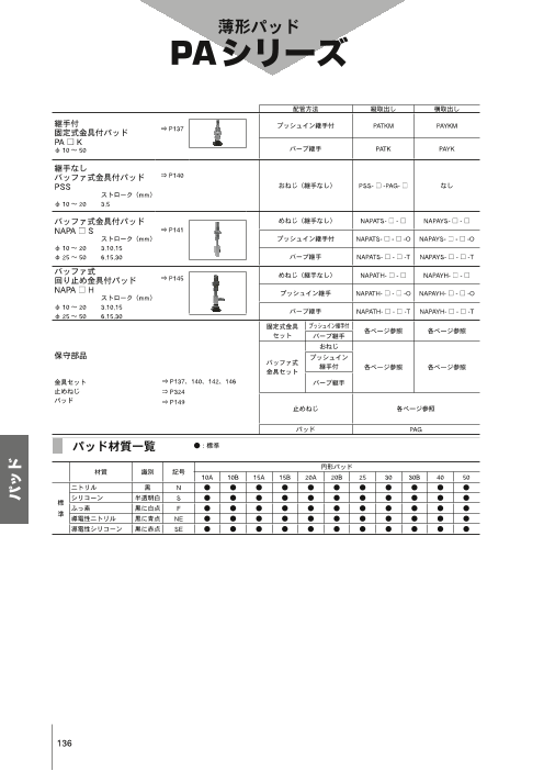 ・継手なしバッファ式金具付パッド/PSS ・バッファ式金具付パッド/NAPATS・YS ・バッファ式回り止め金具付パッド/NAPATH・YH ・薄形パッド単体/PAG ◆詳細はカタログをダウンロードしてご覧下さい。