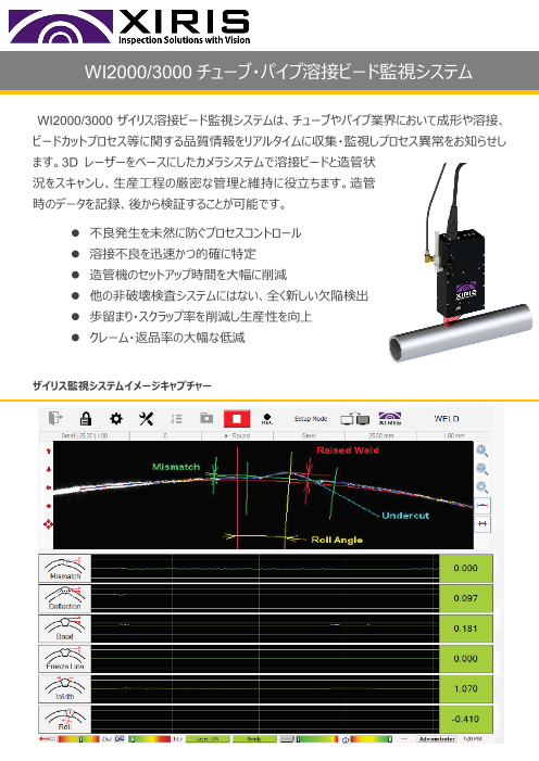 WI2000/3000ザイリス溶接ビード監視システムは、チューブやパイプ業界において成形や溶接、ビードカットプロセス等に関する品質情報をリアルタイムに収集・監視しプロセス異常をお知らせします。3Dレーザーをベースにしたカメラシステムで溶接ビードと造管状況...