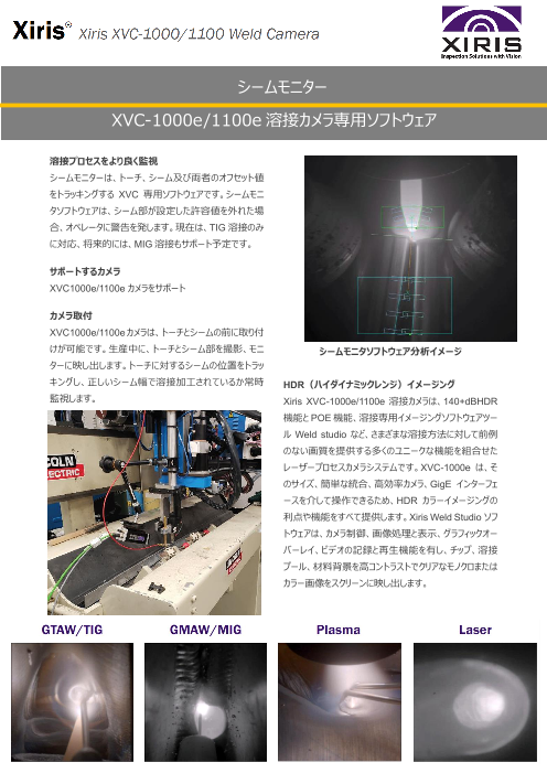 溶接カメラのスペシャリスト、カナダXIRIS社の最新装置、「シームトラッキング」のご紹介。 溶接の種類を問わず、様々なレンズと偏光板を用いて、貴社の溶接状態をクリアーに表示できます。 見えにくい溶接の状態をクリアーの映像でわかりやすく表現します。
