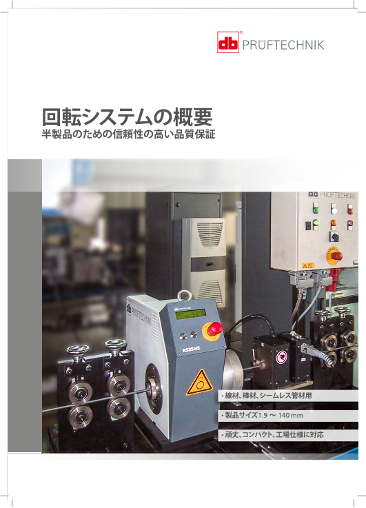 40年の経験を持つプルーフテクニックのハイスピード回転渦流探傷システムのご紹介 ・線材、棒材、シームレス管材用 ・製品サイズ1.9 ~ 140mm ・頑丈、コンパクト、工場仕様に対応 4サイズの回転システム-あらゆる生産ラインに対応 半製品の...
