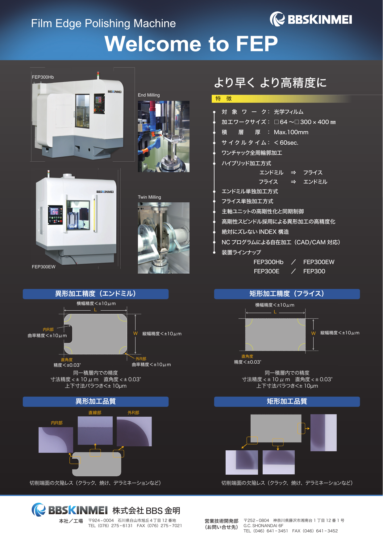 【特徴】 ハイブリッド加工方式 エンドミル単独加工方式 フライス単独加工方式 主軸ユニットの高剛性化と同期制御 高剛性スピンドル採用による異形加工の高精度化 絶対にズレないINDEX構造 NCプログラムによる自在加工
